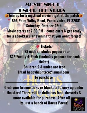 Join us for a mystical movie night at the patch. Come early and get ready for a spooktacular evening that ...