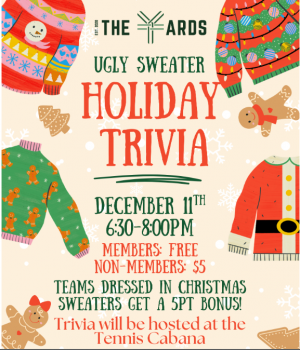 Teams dressed in Christmas sweaters get a 5 point bonus! Trivia will be hosted at the Tennis Cabana. Register via the ...